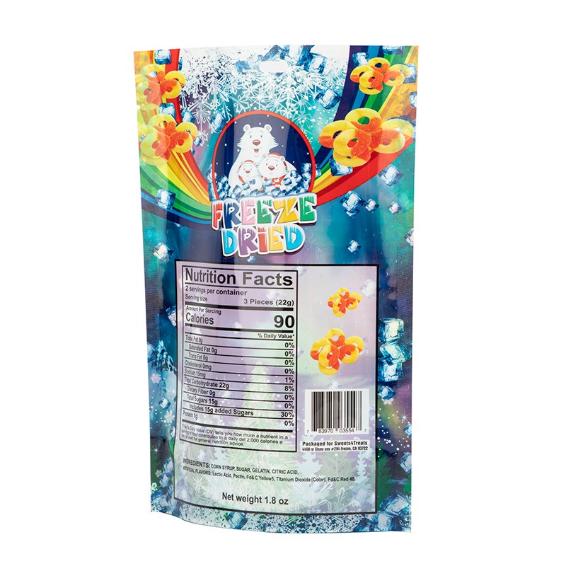 当社のキャンディースタンドアップポーチは、キャ​​ンディーが湿気や圧力を恐れる、湿気にさらされるとキャンディーがべたべたになったり変形したりする傾向があるという問題を解決します。この袋の密封ジッパーは湿気をしっかり遮断し、湿気の多いキッチンやバスルームのドアに置いても、中のキャンディーは乾いたままです。