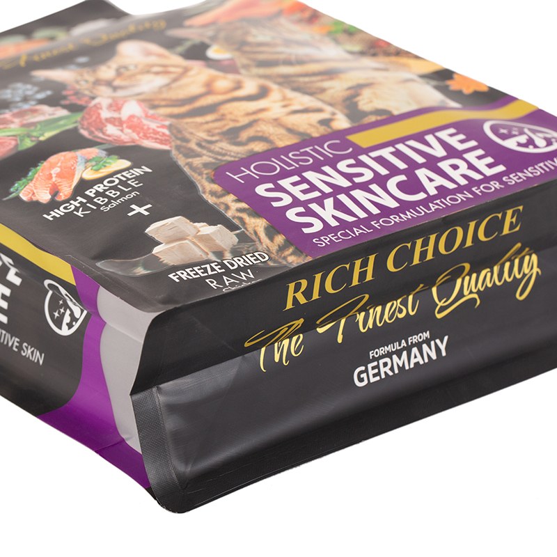 Wanleサプライヤーのドッグフードスタンドアップパウチの最も安心できる特徴は、そのスタンディングデザインであり、底部が立体的で形作られています。ドッグフードを入れた後は、持ち上げずに地面に安定して立つことができるので、キッチンの隅に置いても、ペットフードボウルの横に置いてもきれいです。