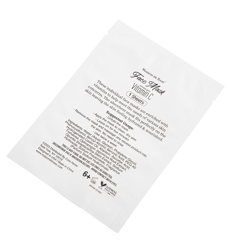 当社のフェイスマスク3面密封バッグの核心は三面密封の設計であり、密封性能は特に信頼性が高く、閉じた後、マスクを外部からのほこりや湿気から分離できます。新しいマスクを中に入れても蒸れたり汚れたりすることがなく、一時的に外したマスクもバッグの中の鍵やティッシュなどのアイテムとの直接接触を避けることができ、より衛生的です。