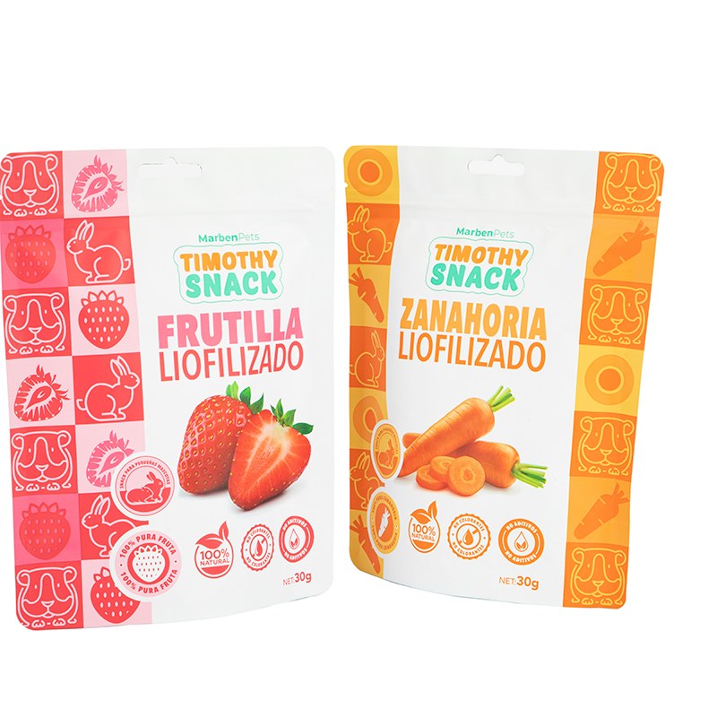 Wanle サプライヤーが製造するその他のペットフードスタンドアップパウチの最も実用的な機能は、小型ペットフードの鮮度を維持することです。これらの小型ペットの食べ物は特にデリケートです。ネズミの餌は湿ると固まりやすく、ウサギの草は湿ると黄色くなって腐ってしまいますが、このバッグの密閉ジッパーは空気と湿気を遮断します。大きな袋を開けて個別に梱包すると、数日分の袋はどれだけ長く保存しても乾燥したままで、ペットにとってより健康的なものになります。